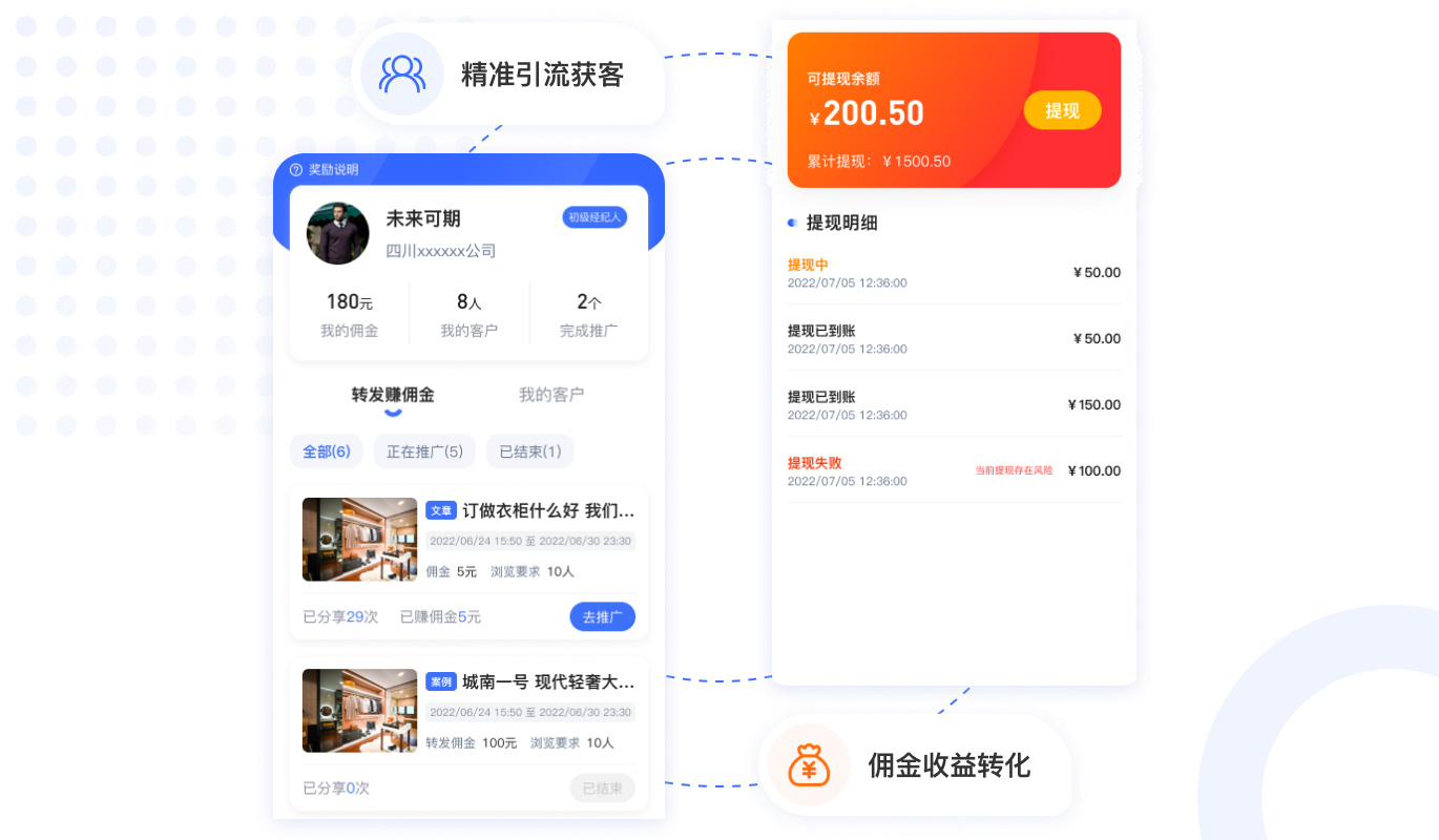 城市代理招商模式,支持市區(qū)/街道代理入住,方便快速發(fā)展市場。